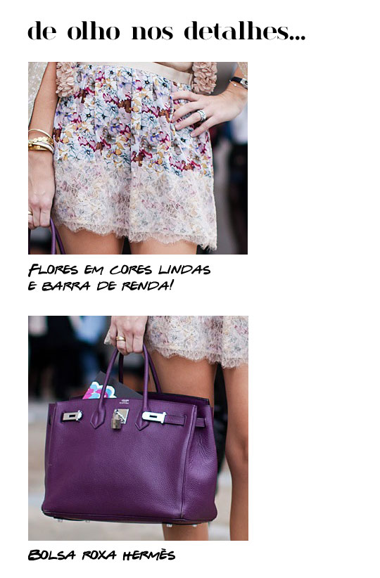 Essa pegada blusinha podrinha de malha de cor neutra, colete ou cardigan em mais claro ou mais escuro + saia liberty (de cores maravilhosas) com uma renda phyna pode ficar perfeito com uma bolsa ou acessório com uma cor mais marcante, como no caso a birkin roxa da Hermès! Se pensarmos bem esse look pode sim inspirar uma produção perfeita e chic para o verão do Brasil! #FicaAdica!