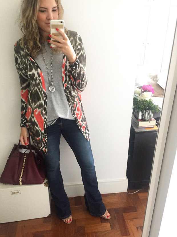 Agora resolvi montar mais um look e mais uma vez quero saber se é impressão minha ou a percepção do quadril maior diminuiu. Eu continuo achando o quadril mais largo do que com outras calças, mas desta vez já não me senti nada desproporcional.