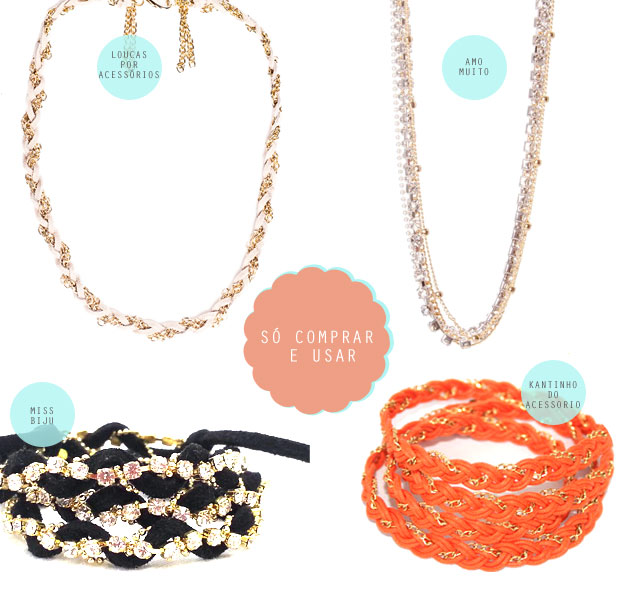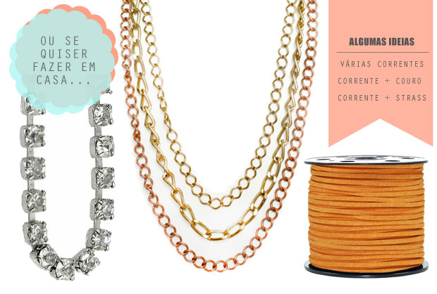 Ou então, caso você seja mais parecida com a gente - isso é, sem paciência nenhuma para fazer - achamos algumas opções de colares e pulseiras que podem funcionar.