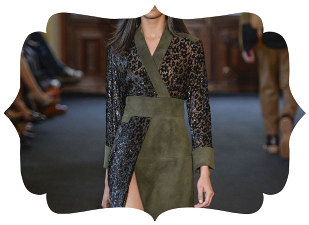 Amamos a combinação da rigidez do verde militar com essa textura - que não conseguimos ver mais de perto - que parece uma renda bordada, desfilada na Ellus. Talvez a peça não funcione muito para a vida real, mas que o detalhe é incrível, isso é!