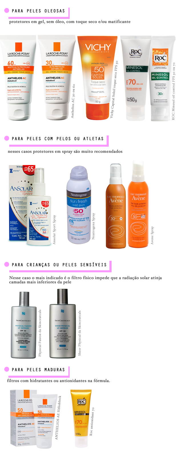 De quebra também pedimos para ela nos contar quais são os protetores mais indicados para os dias quentes do verão. Pensando em peles normais, oleosas e secas, assim como em praia/piscina e dia-a-dia.
