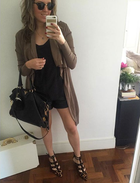 4 - Comprei esse cardigãzão para usar em viagens de avião, mas quando combinei ele com regata e short preto e sapato de oncinha, comecei a vê-lo com outros olhos! Outro básico do dia a dia que eu amo.