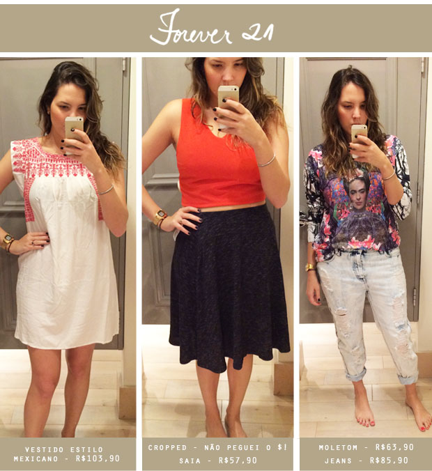 Como nem todo mundo tem a sorte de nascer com o corpo da Alessandra Ambrosio, aproveitei a ida à loja em um dia mais calmo para fotografar uns looks que fiz no provador. Assim é mais fácil de dar uma olhada no que dá para encontrar por lá: