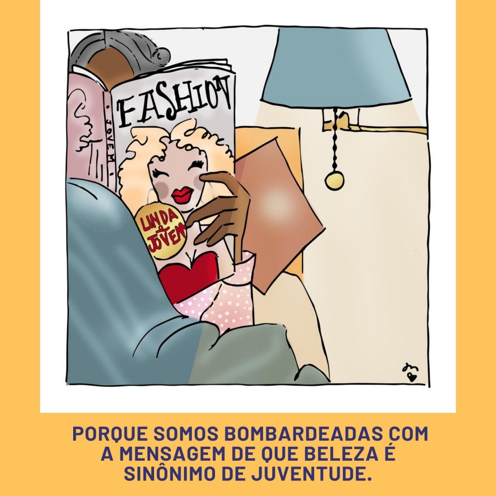Não me incomodo com nada disso, são apenas sinais naturais do momento em que estou e tudo bem. Me sinto confortável aqui, nesse lugar. Porém tem uma coisa que me incomoda sim, agora. Frases como “fulana tá acabada, cara de velha”. Ou “envelheceu mal aquela lá, hein?”. Ou ainda “você não vai entender porque quando você era jovem não tinha isso”.