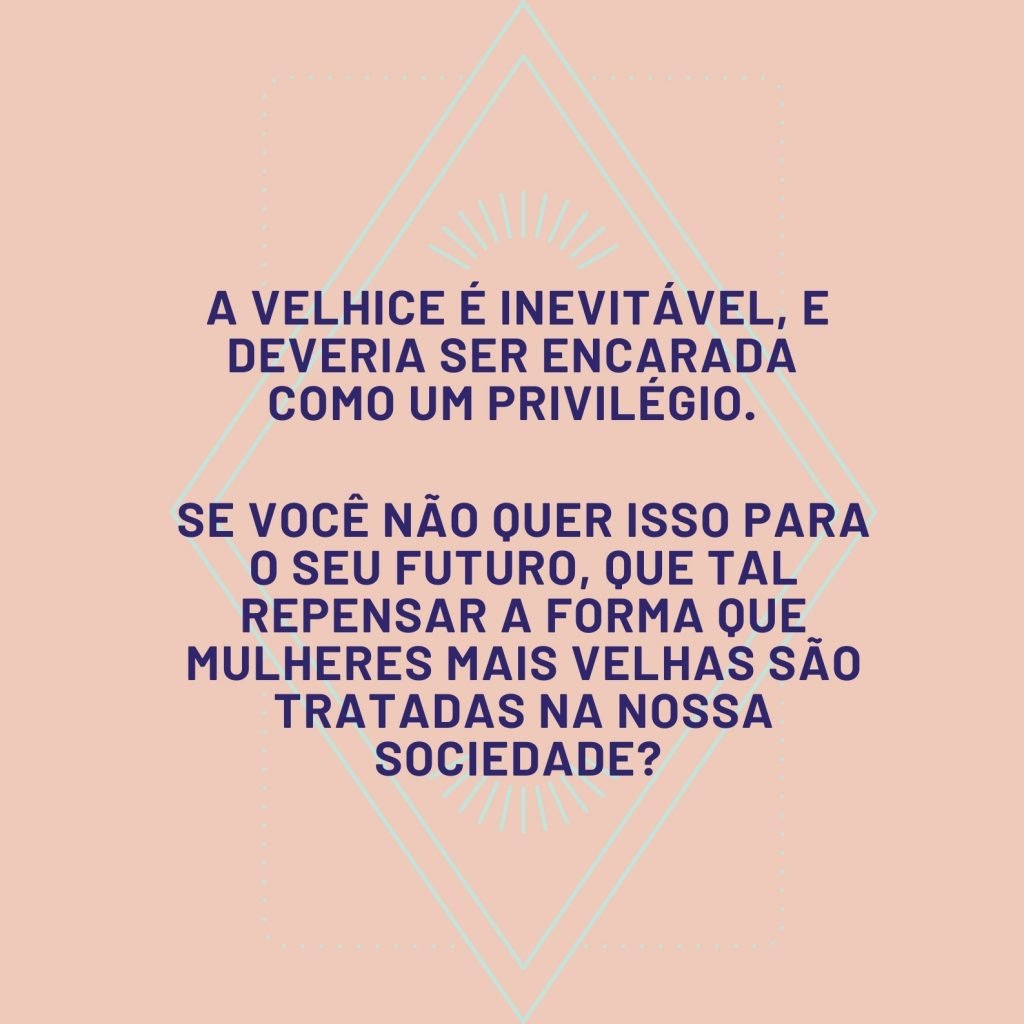 E não me chama de “velha”. Não repare se envelheci “bem ou mal”. O que significa isso, no fim das contas? Inspire-se nas mulheres que estão mais á frente que você nesse processo de crescimento ao invés de dispensá-las. É crescimento, não envelhecimento.