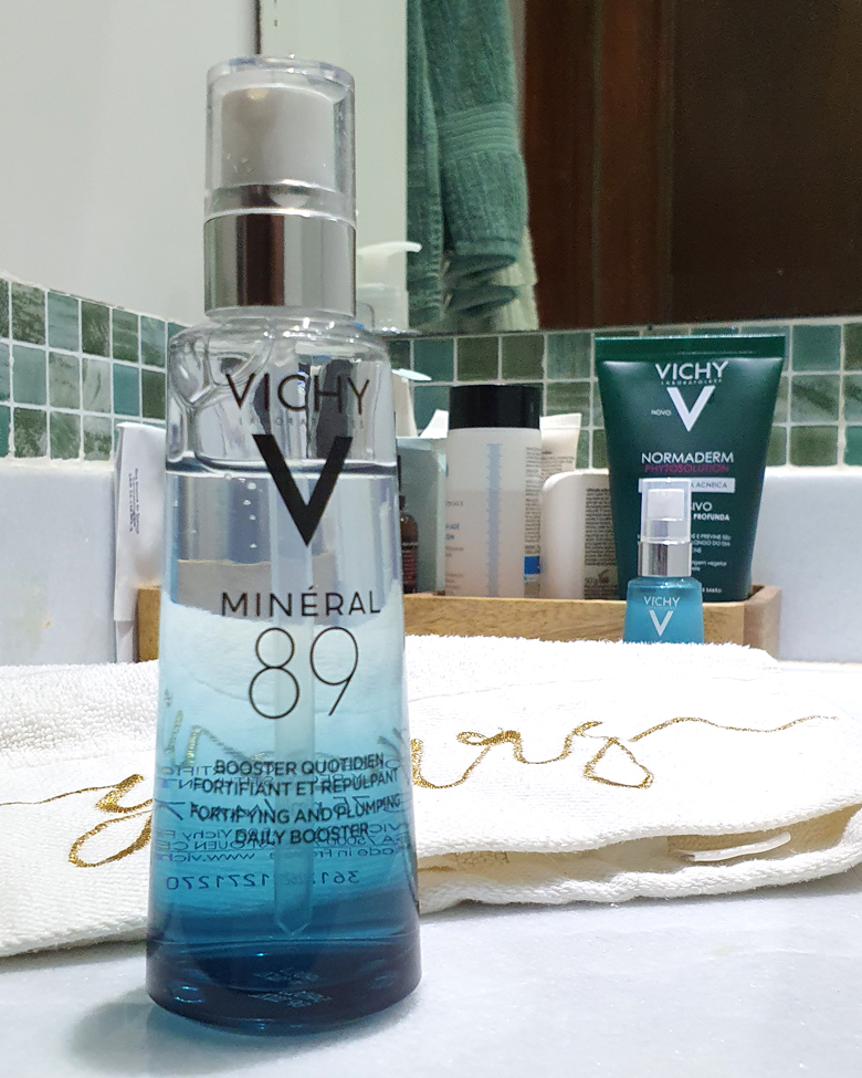 O Minéral 89 é feito com ácido hialurônico e água vulcânica de Vichy, concentrada a 89% (dai o nome, obviamente). Fortalece a pele contra fatores externos e o resultado é muito legal. Ele serve para todos os tipos de pele, mas quem tem pele oleosa já sabe que hidratar essa categoria é um desafio. Ainda mais mantendo a textura da pele saudável e iluminada. Preciso reforçar que é um produto incrível pra quem tem a pele como a minha. Não dá acne e a sensação do produto na pele é uma delícia.