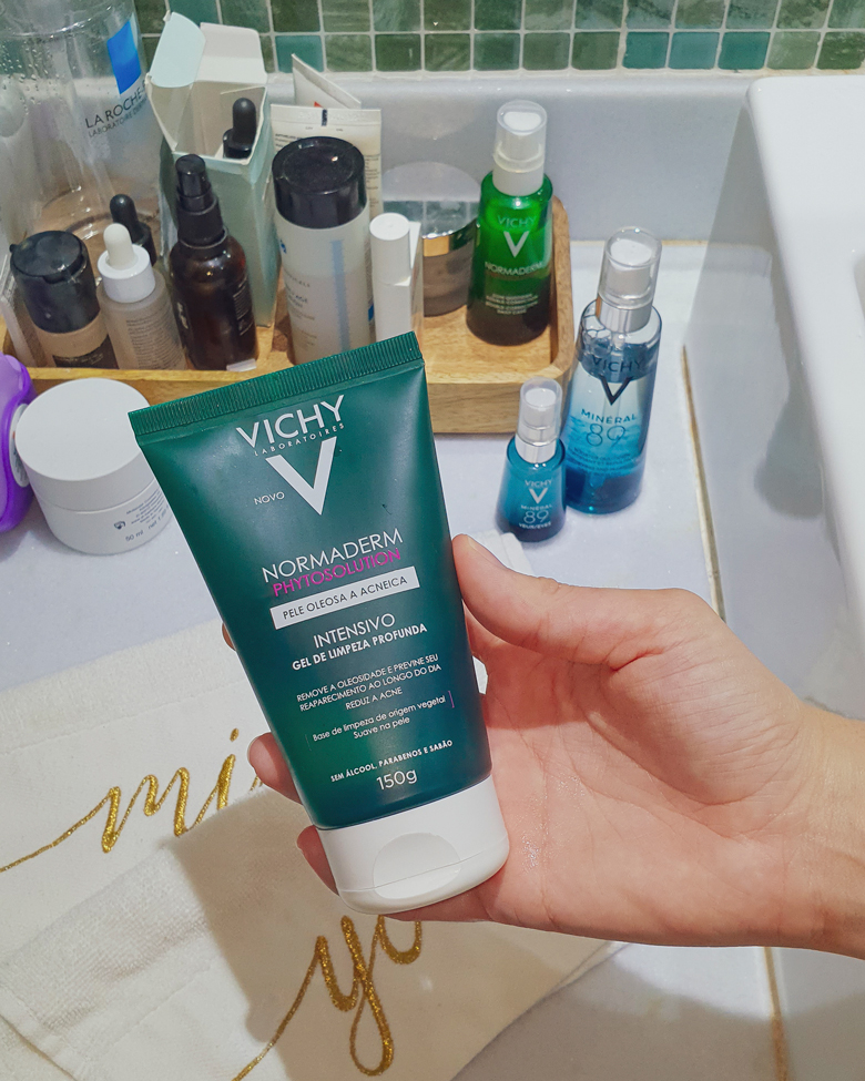 Não existe começar a falar de uma rotina de cuidados com a pele sem a gente estar de pele limpa. De um mês pra cá tenho usado um sabonete de Vichy que ainda não tinha experimentado. O Normaderm Phytosolution gel de limpeza intensivo. Ele é um produto indicado pra peles oleosas e acneicas e talvez seja a maior supresa de todos os produtos de que irei falar hoje.