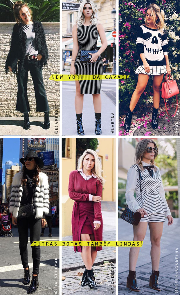 Já vi para comprar na Schutz, na Santa Lolla, na Arezzo, na Cecconello e…na Cavage! Aliás, não é porque a Cavage é parceira nossa, não…mas os looks mais bonitos que eu achei por aí eu fui ver a marcação e as botas eram de lá! Tudo bem que ela apostou em vários tipos e cores, mas o modelo que eu mais curti não poderia ter um nome mais sugestivo, inclusive…New York! :D